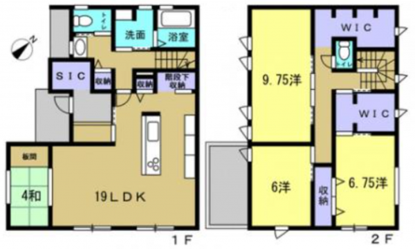 2F 洋9.75 洋6.75 洋6 WIC トイレ