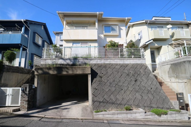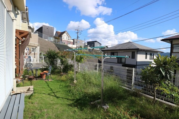 高台に建つ、開放感あふれるお住まい。日当たりのよい前庭は、周囲からの視線も気にならず、プライベートな時間をゆったり楽しめます。
