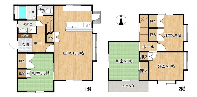 LDKは18帖の広さがあり、家族が集まる場所もゆったり。2階の3部屋も全て6帖以上で、子ども部屋や書斎など使い方自由です。