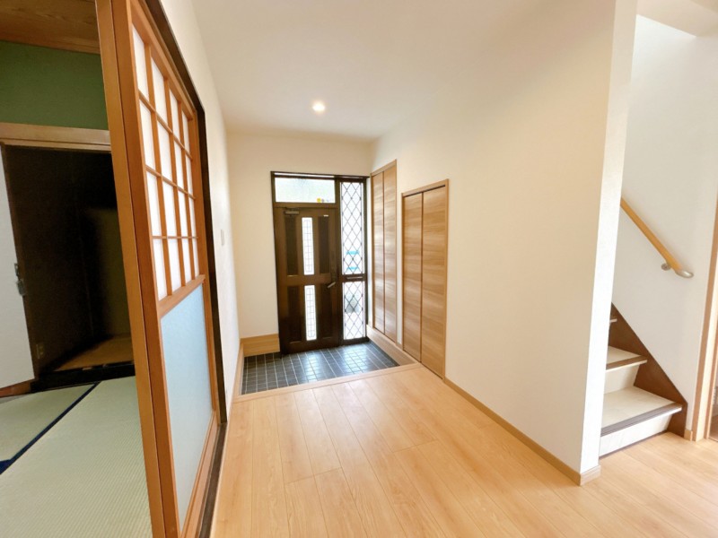 2025年10月上旬内外装リフォーム完了:システムキッチン、ユニットバス、温水洗浄便座トイレ、洗面化粧台、建具、クローゼット、シューズボックス交換、フローリング上張り、クロス張替え、外壁