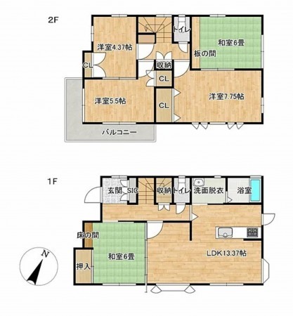 2F 7.75洋 6和 5.5洋 4.37洋 トイレ